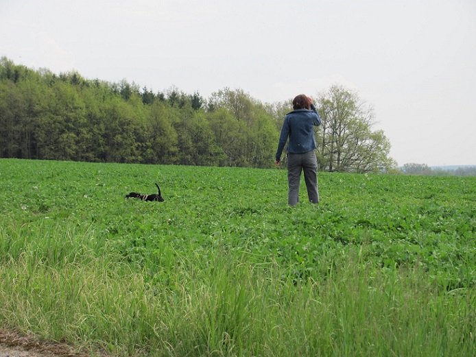 Po delší pauze jsem se opět vydala s Linetkou pokusit se o další zkoušku. Naším cílem byla StPr 2 - zkouška vyhledávání předmětů (V prostoru o rozměrech 20 x 40 m, prošlapaném několika osobami, rozmístí rozhodčí 4 cizí předměty o rozměrech 10 x 3 x 1 cm, které musí pes během časového limitu 12 min. najít a označit. Nevýhodou u této zkoušky je, že pes nedostává na začátku napachovat kontrolní předmět, takže v podstatě dokud nenajde 1. z předmětů, tak ani neví co hledá). Tato zkouška byla pro nás opravdu hodně napínavá od začátku až do konce. Necelé 3 týdny před termínem konání si Linetka narazila prst na přední tlapce a skákala o třech