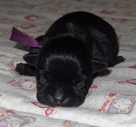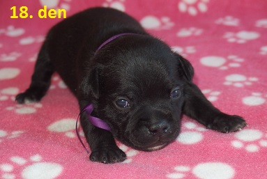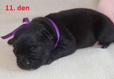 Fialka (jak jí doma říkáme) je nádherná fenečka, typově také více podobná tatínkovi, ale co se týká lumpáren, zdatně sekunduje Samovi. Je to také velmi akční fenečka, která by se určitě dobře uplatnila v nějakém sportu.