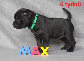 Max je největším pejskem z vrhu a zároveň nejvíce podobný svému tatínkovi - vzhledem i povahou. Pohodář, malinko klidnější povahy, který se ale také umí pořádně rozdovádět.